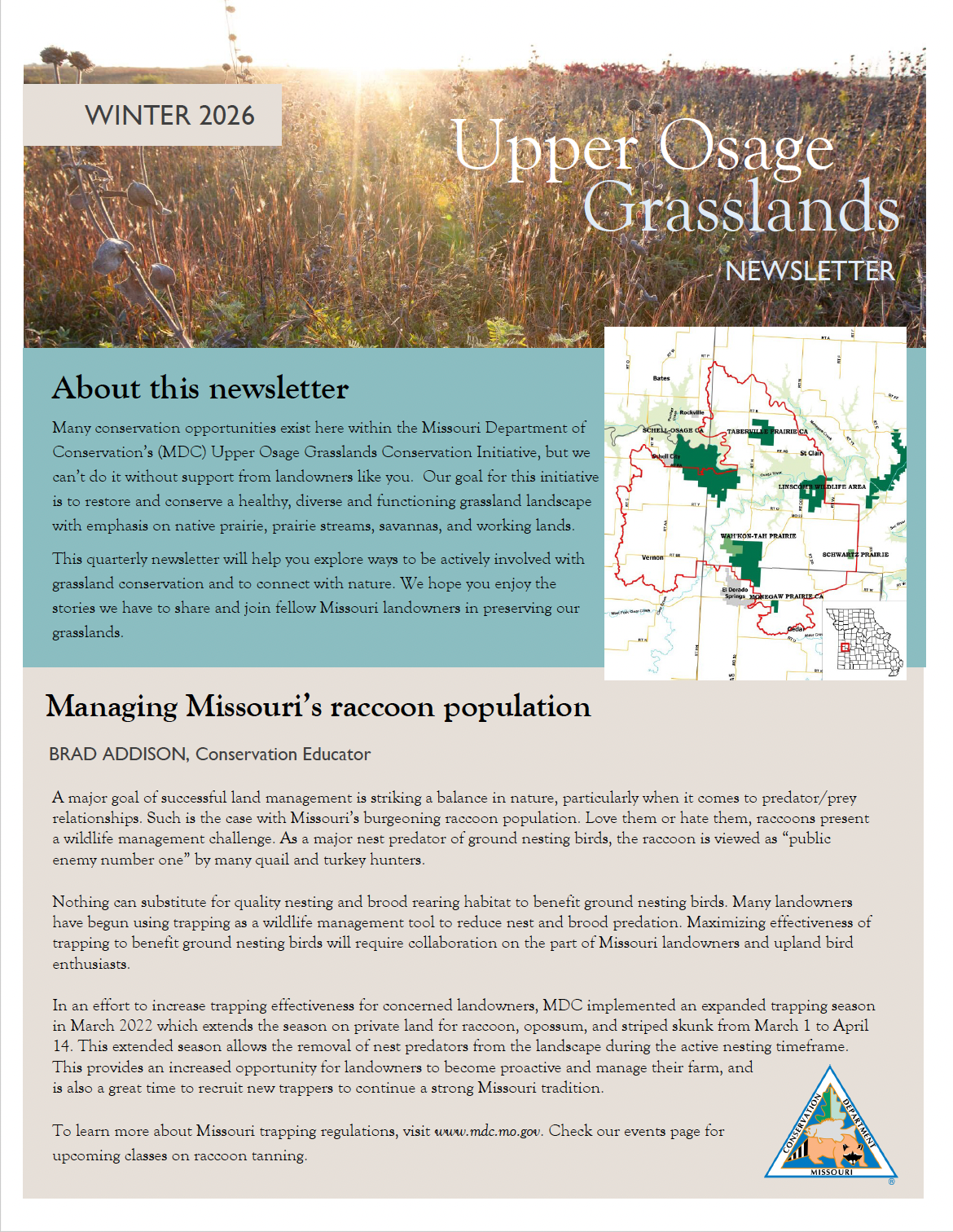 Upper Osage Grassland priority geography - Printed six-page newsletter to landowners